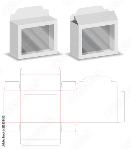 Bílá kartonová krabička s průhlednou sadou oken. Realistické vektorové 3D papírové dárkové balení nebo kartonové nádoby připravené pro design značky