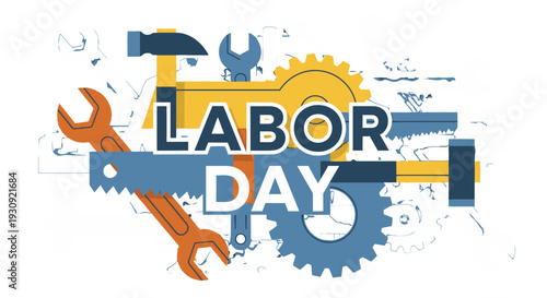 Obrovské truhlářské ruční nástroje v sadě nástrojů a mikro mužské postavy dřevař opravář tesař. Koncepce výstavby, opravy domů a renovace domů pro webový banner, webovou stránku atd.