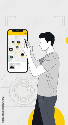 Carsharing service vector concept ilustrace. Lidé, kteří používají mobilní aplikaci pro sdílení automobilů k pronájmu automobilu. Spolujízda, koncept pronájmu aut online pro webový banner, webovou stránku atd.
