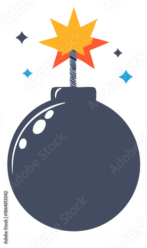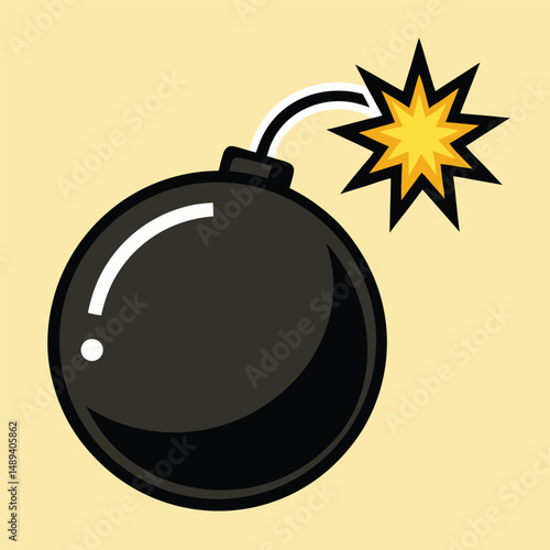 Kreslený černý dělo bomba míč s hořící výbušný knot vektorové ikony ilustrace izolovaných na bílém pozadí