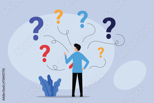 Kreslený podnikatel s nápadem vynikající z davu. Mysli po vybalení z krabice. Vektorový koncept ilustrace v plochém stylu designu. Kreativní nápady, ozubená kola, lidské postavy, žárovka.