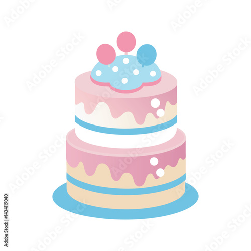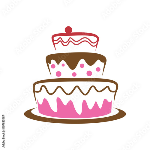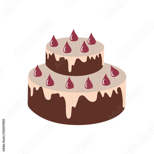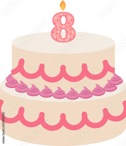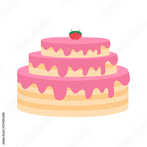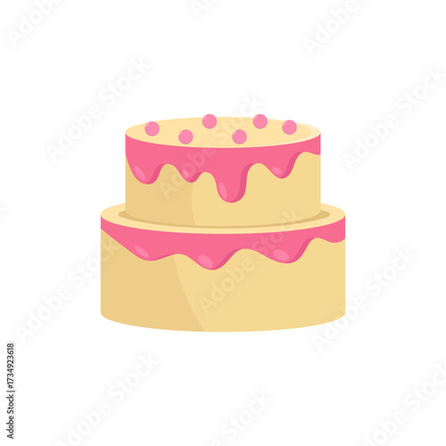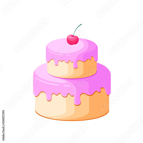 Kreslený dort vektor. Ikona oslavy narozenin. Byt dezert jídlo pro miminko izolovaných na bílém pozadí