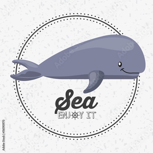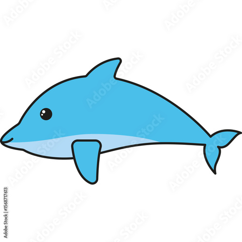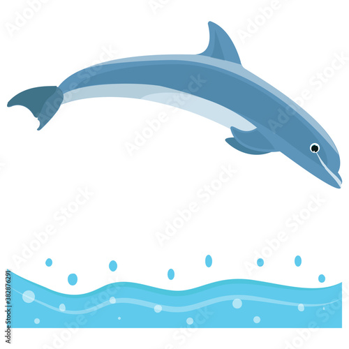 Kreslený delfín vektor. Ikona roztomilé ryby. Mořská voda zvíře ilustrace. Legrační podvodní stvoření plavat izolovaných na bílém pozadí