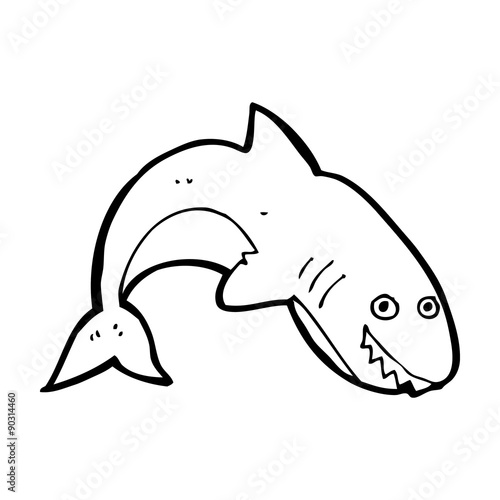 Kreslený žralok vektor. Roztomilý oceán ryby znak ikona ilustrace. Legrační moře obyvatel se zuby čelist maskot izolované. Nebezpečí mořské monstrum, nebezpečné stvoření na bílém pozadí