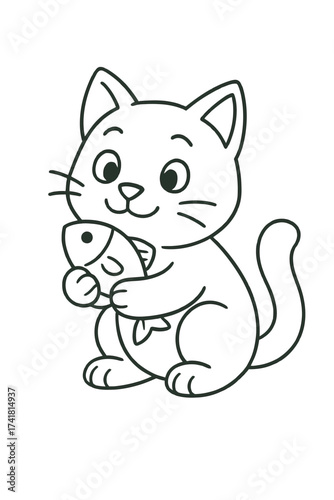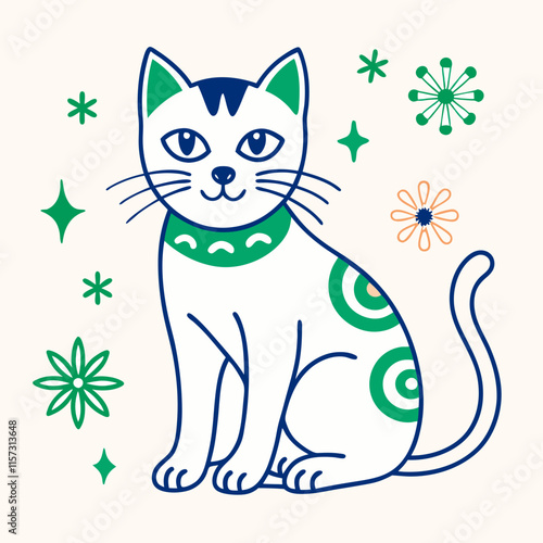 Kreslený jarní kočka s kuřecím masem na hlavě vektor. Roztomilé zvíře a malá farma pták ikona pro design karty. Kotě a opeřený přítel charakter izolované ilustrace na bílém pozadí