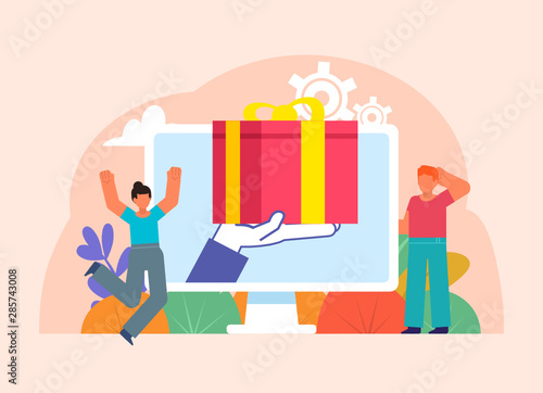 Šťastní lidé dostávají peníze za online nákupy v internetovém obchodě, ploché vektorové ilustrace. Cash back bonus kreditní karty odměna. Cashback pobídky, věrnostní programy pro zákazníky.