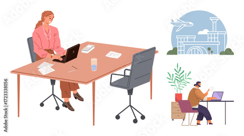Kasino Online poker hra koncept. Vektorové izometrické ilustrace lidí, kteří hrají kasinové hry ve virtuální pokerové herně u stolu s hazardními hrami při používání stolního počítače a notebooku.