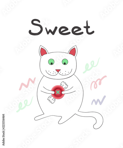 Kočka kosmonaut vektor. Kotě na sobě astronaut helmu kreslená postavička ikona. Domácí zvíře létající ilustrace izolovaných na bílém pozadí. Galaktické dobrodružství, průzkum vesmíru