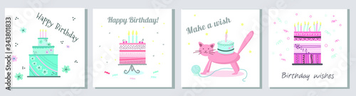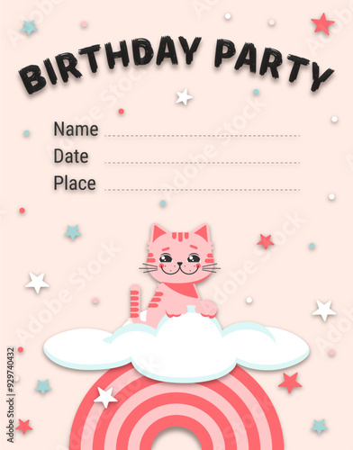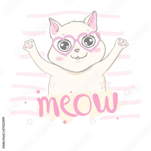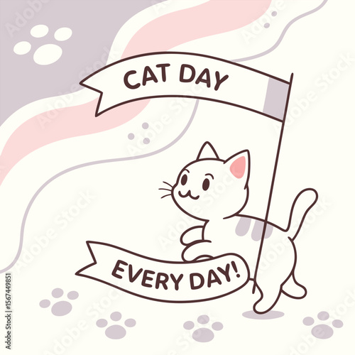 Kočka na pláži vektor. Roztomilé zvíře užijte si letní ikonu. Legrační líný ospalý mazlíček opalování na kostkované dece. Dovolená o víkendu, sezóna odpočinek a šťastný znak ilustrace izolovaných na bílém pozadí