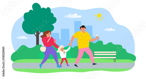Rodina z doby kamenné shromažďuje klestí v lese, aby rozdělala oheň. Vektorové ploché styl designu ilustrace otce s dřevěným klubem, matka a dcera se suchými větvemi.