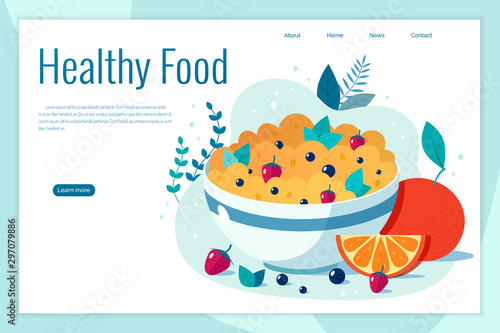 Zkontrolujte jídlo na stupnicích. Zdravé jídlo, kalorie dieta. Vektorové webové stránky design šablony. Ilustrace konceptu webové stránky vstupní stránky.
