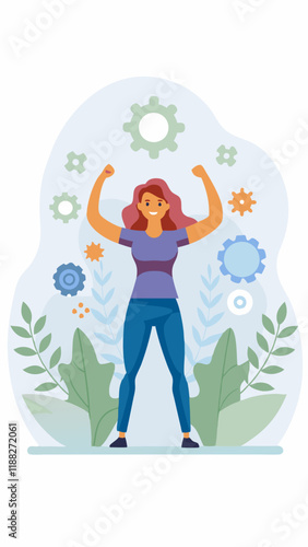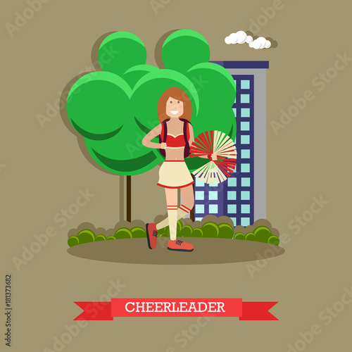 Vektorové ilustrace roztomilé dívky, která drží červenou bambulí. Cheerleader concept designový prvek v plochém stylu.