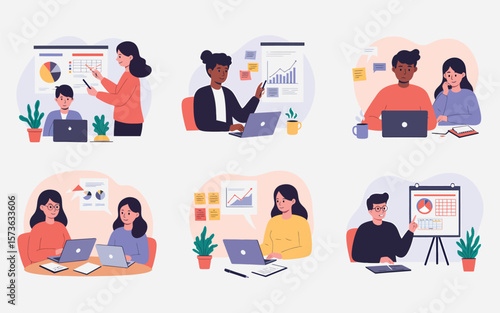 Šéfkuchař vaření japonské jídlo vektorové scény. Japonsko Fast food Příprava izolované ilustrace set. Kuchař stojící u pultu připravuje nudle a sushi, servírovací misku