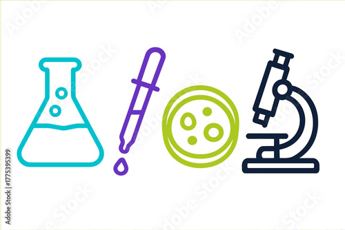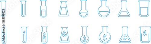Vrstvený papír řez styl zkumavky a baňky set, vektorové ilustrace izolovaných na bílém pozadí. Chemické laboratorní sklo, papírové umění moderní řemeslný styl.
