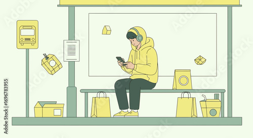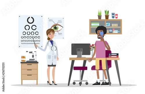 Vektorové ilustrace chemik muž drží stojan zkumavky. Laboratorní interiér s laboratorním sklem. Chemik koncept plochý styl designový prvek.