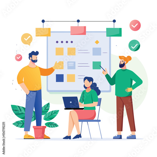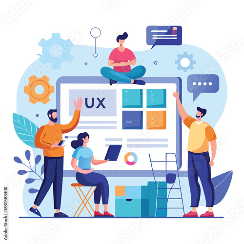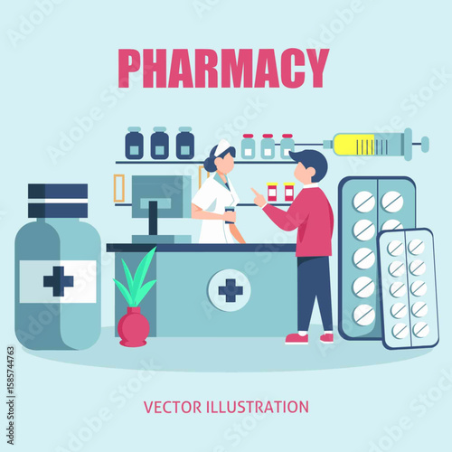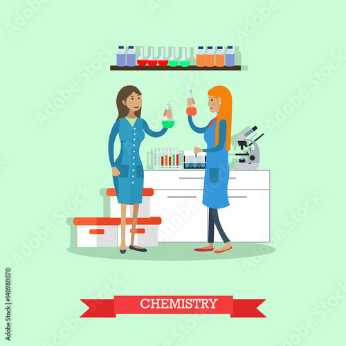 Vektorová ilustrace konceptu chemie v plochém stylu. Chemici ženy testování chemických prvků. Laboratorní interiér s laboratorním vybavením a sklem.