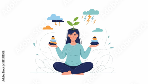 Dítě se bojí vektoru. Vyděšená holčička se bojí blesku a bouřky venku. Vyděšené dítě se cítí vystresované a vystrašené počasí v posteli