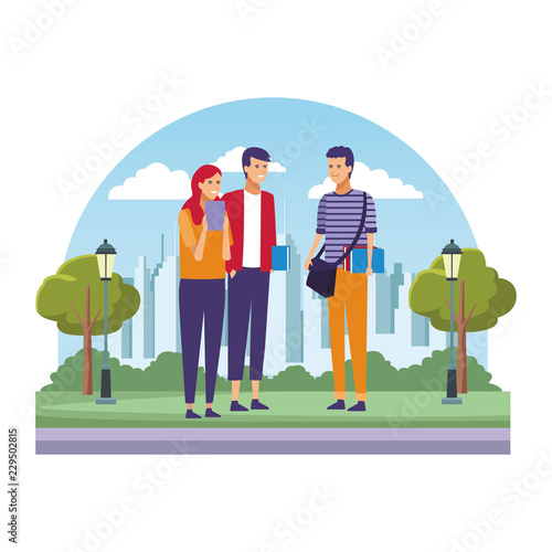 Vektorové ilustrace školních dětí chlapec a dívka drží za ruce. Dětský koncept designový prvek v plochém stylu.
