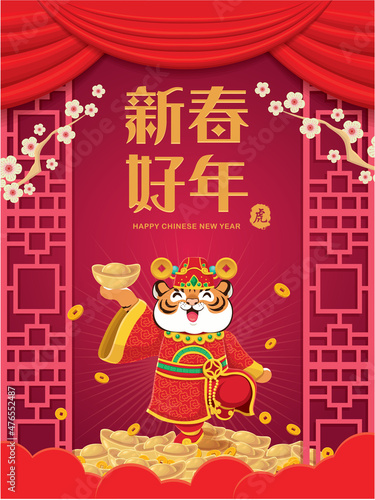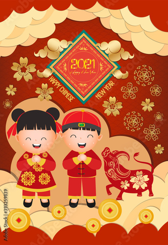 Čínský Nový rok 2021 koncept vektorové ilustrace. Tradiční rodinná večeře pro čínský Nový rok. Rok bílého kovového Vola, lunární kalendář. Překlad z čínského jazyka-Šťastný Nový Rok.