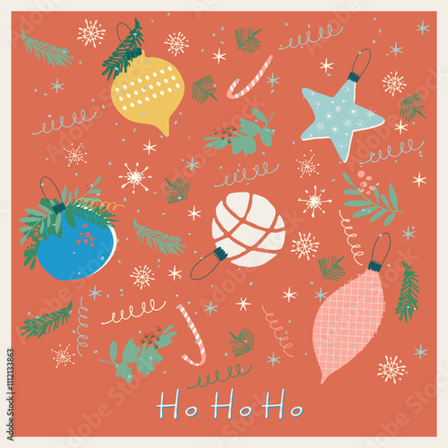 Vánoce a Šťastný Nový rok vzor pozadí. Vektorová ilustrace s vánočními ozdobami a girlandami. Banner a dovolená blahopřání šablona. 2022 zimní sezóna dekorace design.