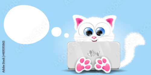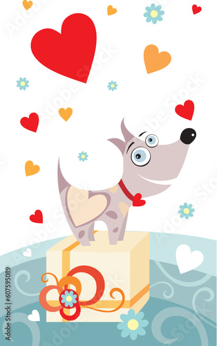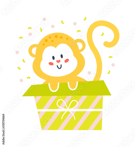 Roztomilý vánoční kočka vektor. Funny zimní pet charakter pro dovolenou karty doodle design. Vánoční kotě překvapení dárek sedí v dárkové krabičce izolovaných na bílém pozadí