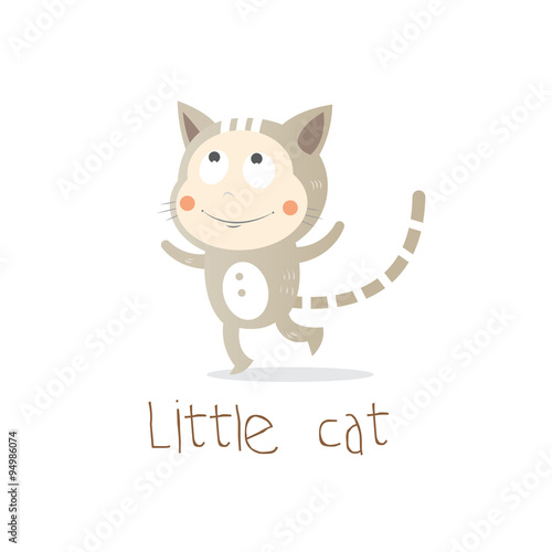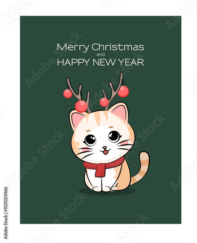 Vánoční kočka vektor. Roztomilý zimní pet charakter pro dovolenou karty doodle design. Vánoční kotě s holly bobule jmelí dekorace izolovaných na bílém pozadí