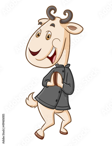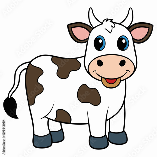 Vánoční kráva charakter na sobě teplý šátek drží dárková krabička vektorové ikony izolovaných na bílém pozadí.
