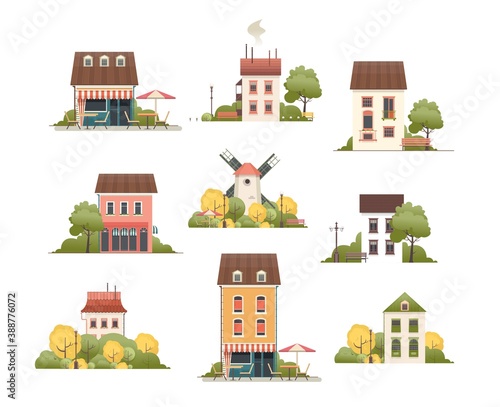 Vánoční jarmark set, ploché vektorové ilustrace. Zimní pouliční stánky se svařeným vínem, grilovaným jídlem, vánočními dárky, perníkovými sušenkami. Lidé bruslení, návštěva novoročního veletrhu, zábava.