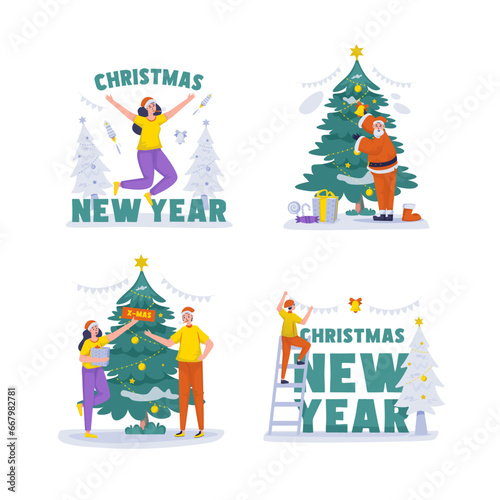 Vánoční večírek vektorové webové stránky šablony, webové stránky a vstupní stránky design pro vývoj webových stránek a mobilních stránek. Skupina lidí šťastný obchodní tým slaví Vánoce a Šťastný Nový Rok.