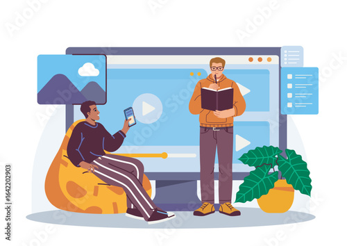 Chroma key natáčení, design vstupní stránky, webové stránky banner šablony set, plochý vektorové ilustrace. Zelená obrazovka místnost. Chroma key studio. Filmová produkce.