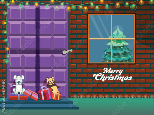Cirkusová show vektorová ilustrace. Animal show s vyškoleným slonem a psem, vzdušnými akrobaty a klauny vystupujícími na jevišti s plochými designovými prvky.
