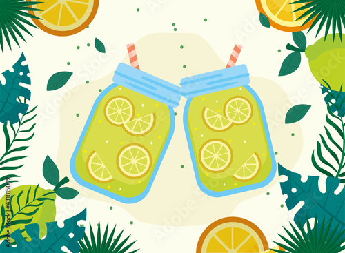 Šablona návrhu reklamního plakátu na nealkoholické nápoje. Vektorové realistické hliníkové plechovky se štítkem, plátky citronu, stříkající citrusovou šťávou a kopírovacím prostorem.