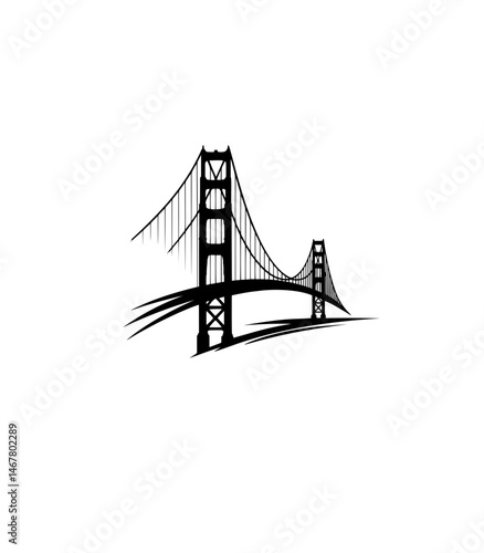 Město most silueta přes řeku vektorové ikony izolovaných na bílém pozadí