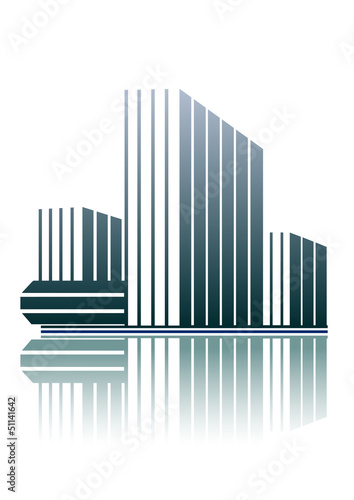 Ikona města. Panoráma města s vektorovou budovou. Městská silueta. Obchodní město krajina izolovaných na bílém pozadí