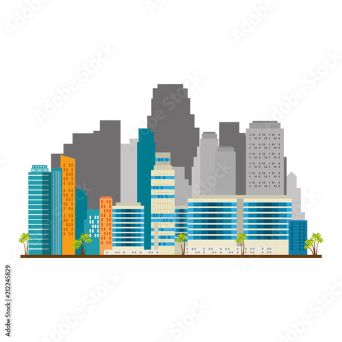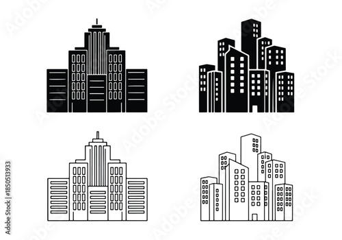 Město mrakodrapy vektorové horizontální banner. Cestovní plakát s městskými budovami, domy, Panoráma města a místo pro text. Plochý lineární styl designu.