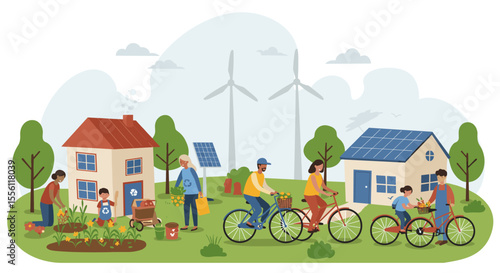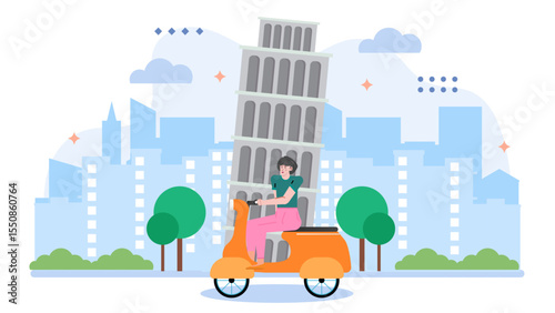Koncept městské ulice vektorová ilustrace v plochém stylu. Street food vozík nebo tříkolka káva kolo, sportovní rampa a lidé kupují kávu jít, jízda na kole a skateboard. Plochý design.