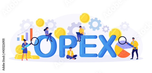 Pronájem slovo velkými písmeny s muži na koni elektrický skútr, jízdní kolo, tlačit skútr a řízení auta. Vektorové flar styl design ilustrace. Koncept městské dopravy k pronájmu.