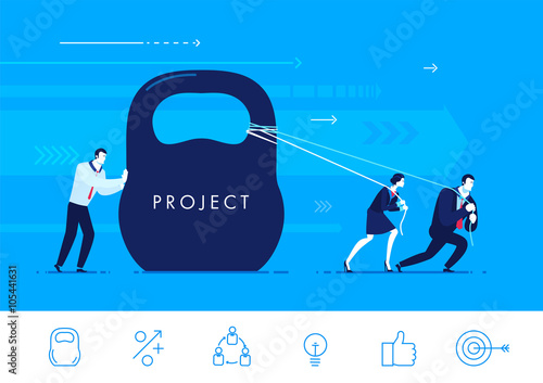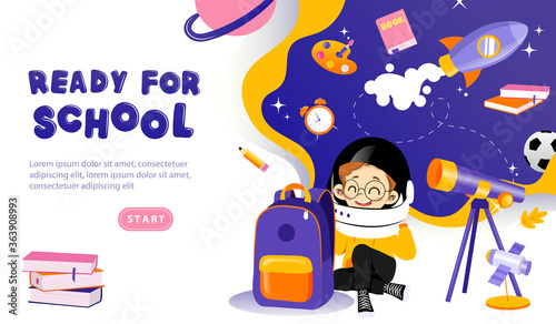 Úklidové služby společnosti vector flat style design ilustrace. Jarní úklid domu koncept s velkým vysavačem a drobné znaky pro web banner, webové stránky atd.