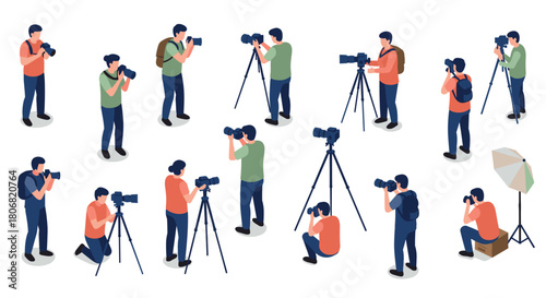 Úklidová společnost zaměstnanci, muž, žena znaková sada, plochý vektor izolované ilustrace. Uklízečka, údržbář s domácím úklidovým zařízením. Mytí podlah a oken, poprášení, sběr odpadků.