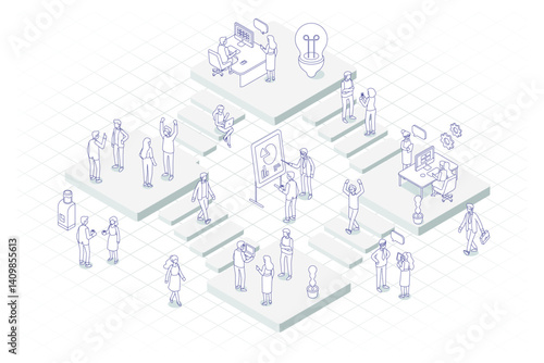 Úklid domu, design vstupní stránky, šablona banneru webových stránek, izometrická ilustrace plochého vektoru. Rodinné postavy dělají domácí práce společně. Domácí práce. Rodinný životní styl.