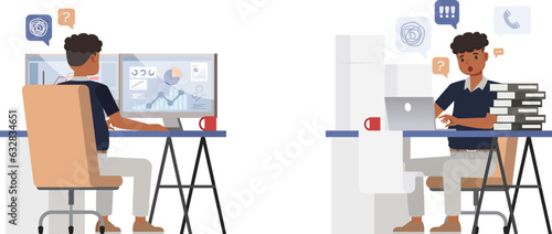 Sada obchodu s oblečením, vektorová plochá ilustrace. Mužské a ženské postavy nakupují oblečení a boty v módních buticích. Muži a ženy módní obchod interiér se zbožím na prodej, kupující a prodávající