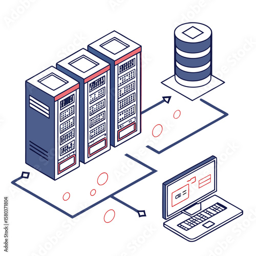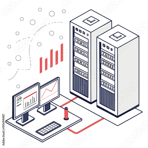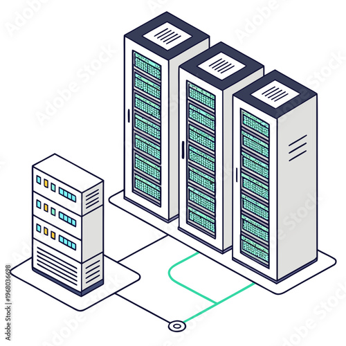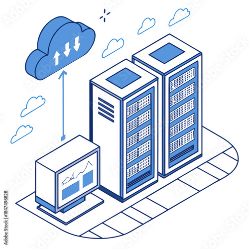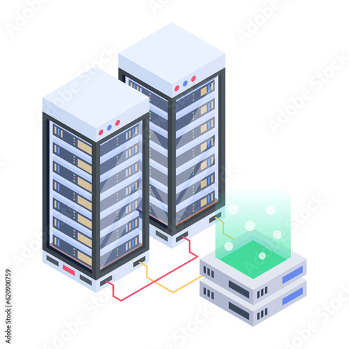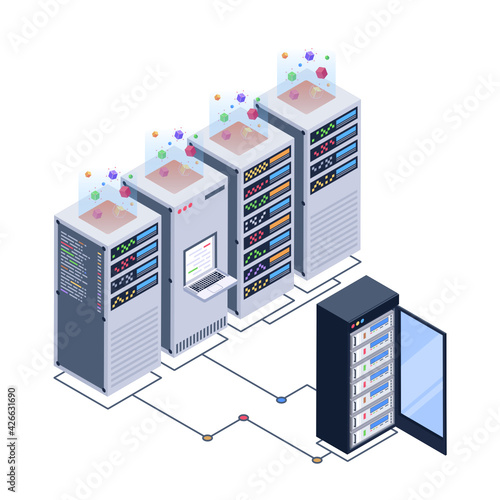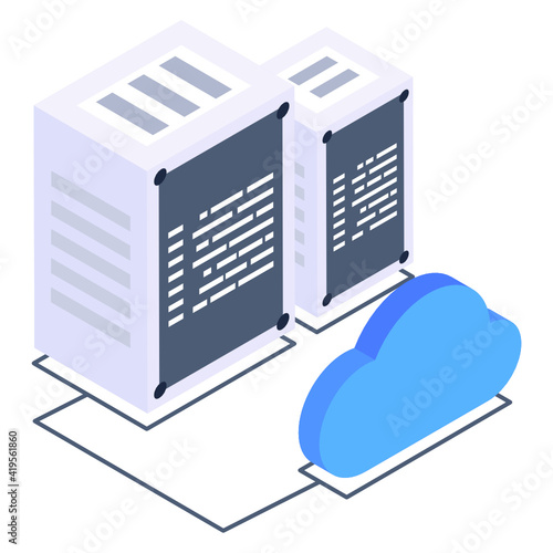 Vektor cloudového datového serveru. Isometric technology database center for storage information. Síťová infrastruktura, datacenter 3D ikona izolovaných na bílém pozadí