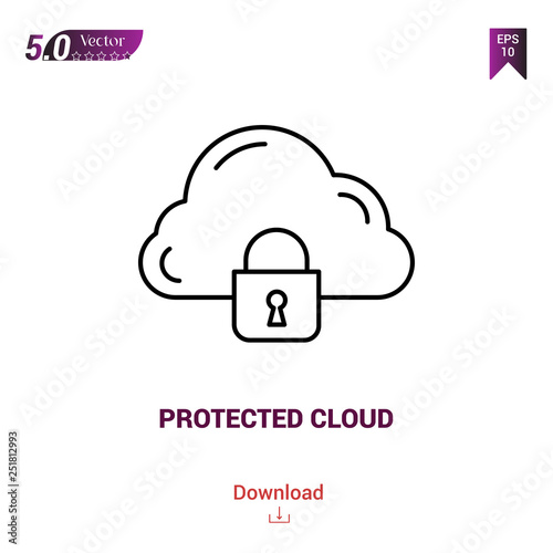 Cloud security concept vector web banner šablony. Cloudové úložiště a visací zámek Černá nízká poly drátěná síť na bílém pozadí. Ilustrace polygonálního uměleckého stylu.