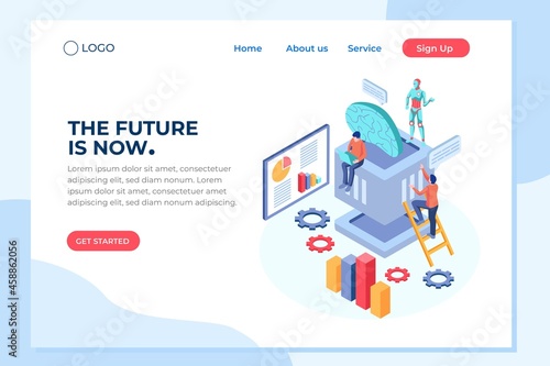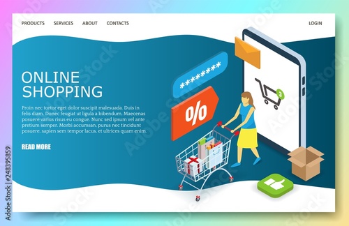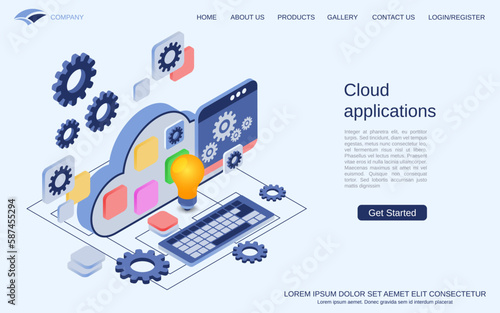 Šablona webových stránek vstupní stránky cloudových služeb. Vektorové izometrické ilustrace. Cloudové úložiště a sdílení souborů koncept služeb se stolním počítačem, přenosnými mobilními servery připojenými k cloudu se složkou souborů.