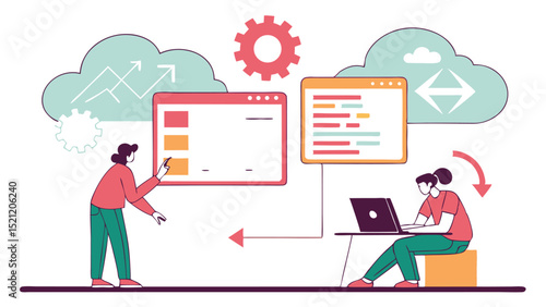 Obrovský mrak, symbol obálky a mikro mužské postavy s fotografií, složka souborů, přenosný počítač, vektorová ilustrace. Sdílení informací prostřednictvím konceptu připojení k internetu pro webovou stránku.