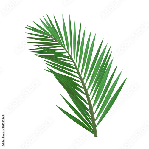 Kokosový list vektorové 3D ikona. Zelená coco Palma listy izolovaných na bílém pozadí. Exotická džungle opouští designový prvek