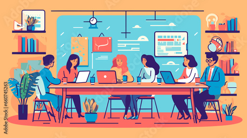 Vektorová ilustrace baristy, která připravuje kávu, lidé pijí kávu a jedí koblihy. Coffee cafe concept designové prvky v plochém stylu.