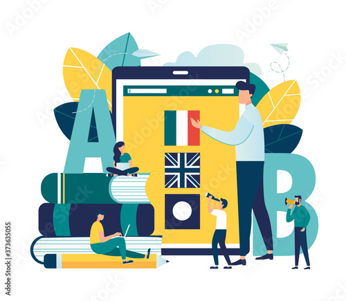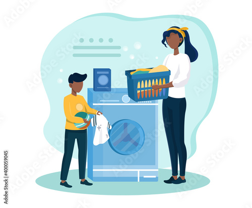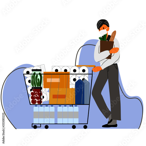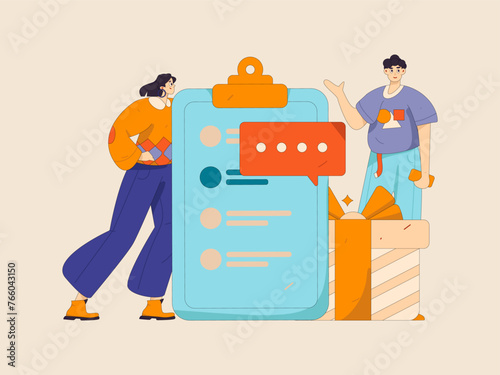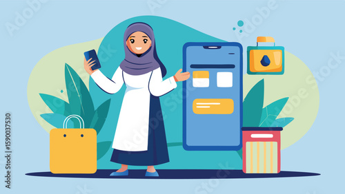 Vektorová ilustrace zákazníka, který si kupuje kávu, usmívá se prodavačka s šálky kávy. Interiér kavárny. Plochý design.