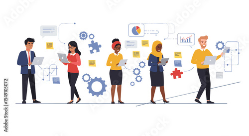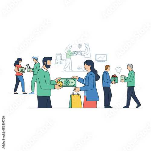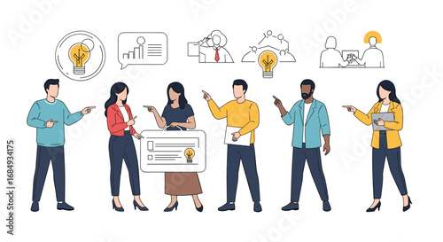 Vektorové ilustrace kavárny lidé servírka, pekař, číšník, šéf a zákazník s kávou jít. Plochý styl designové prvky, ikony izolované na bílém pozadí.
