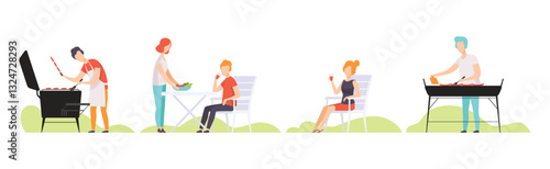 Mužské a ženské postavy sklizeň, zpracování, balení, pražení a mletí kávových zrn, vektorové ilustrace. Koncept výroby kávového průmyslu pro webový banner, webovou stránku atd.